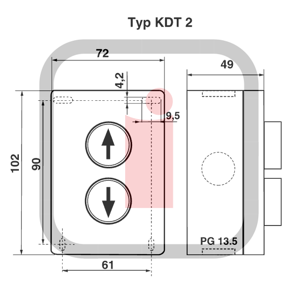 KDT 2 - sterownik (kontroler dwufunkcyjny) impulsowy GÓRA - DÓŁ do bram przemysłowych, przycisk sterowniczy GEBA.